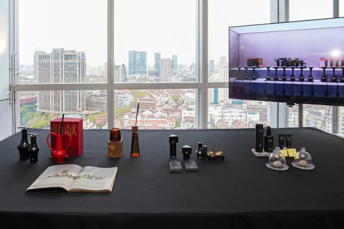ADA Cosmetics上海SHOWROOM开幕活动现场,本土品牌闻献 DOCUMENTS产品展台。