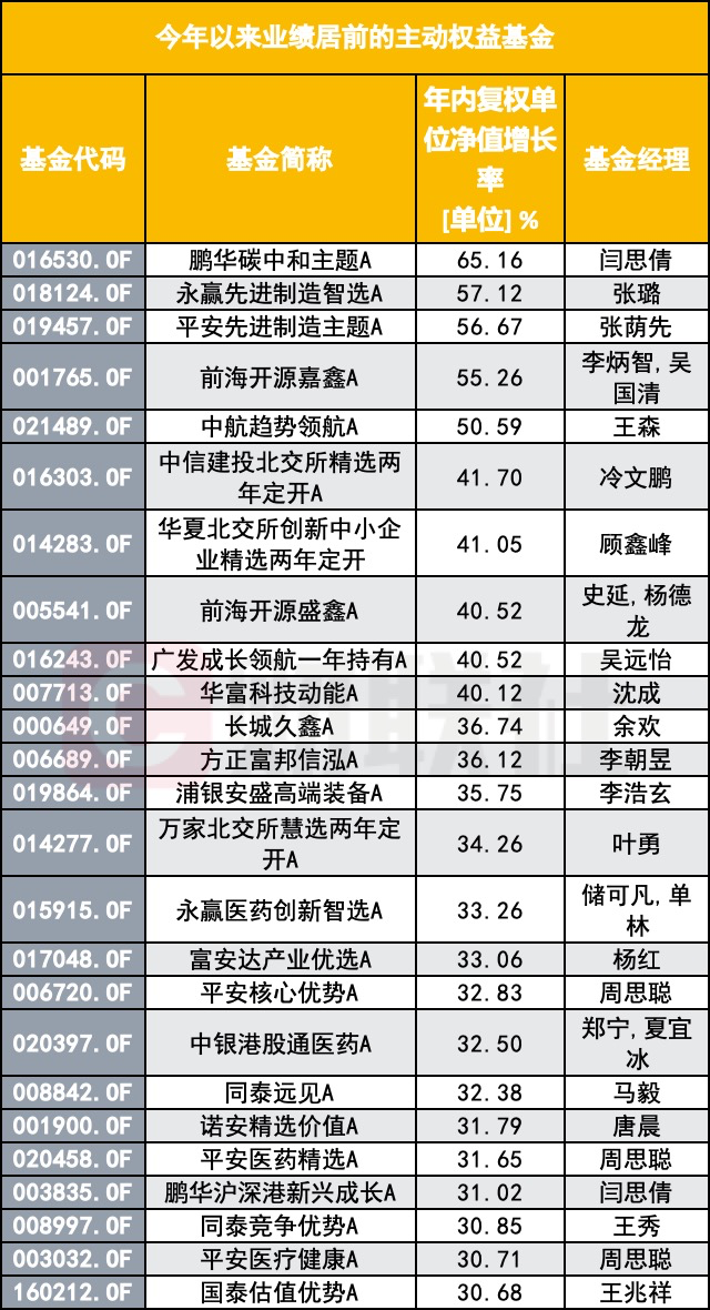 细查年内收益领先的多只产品,业绩领跑的基金主要分为三类: