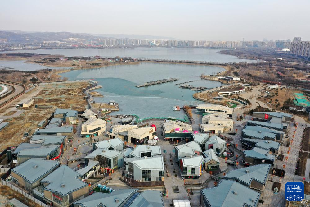 这是太原市晋阳湖公园一角(2月19日摄,无人机照片)。