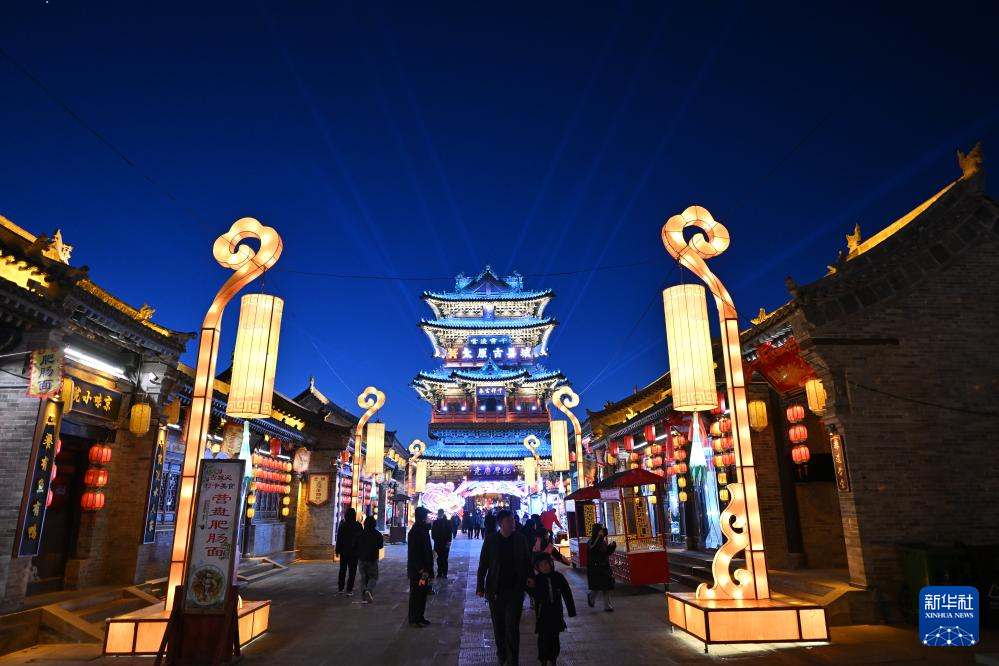 游人在太原市晋源区太原古县城游览(2月5日摄)。