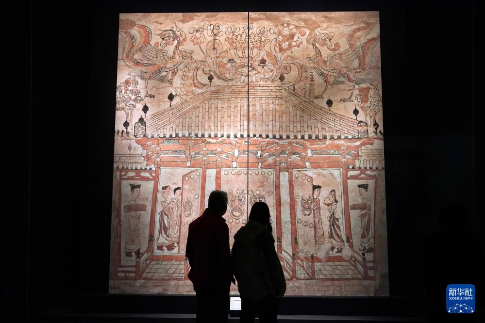 参观者在太原市太原北齐壁画博物馆欣赏壁画(2024年3月21日摄)。