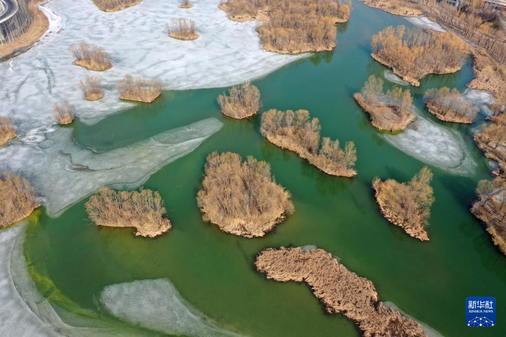 这是太原市汾河湿地(2月19日摄,无人机照片)。