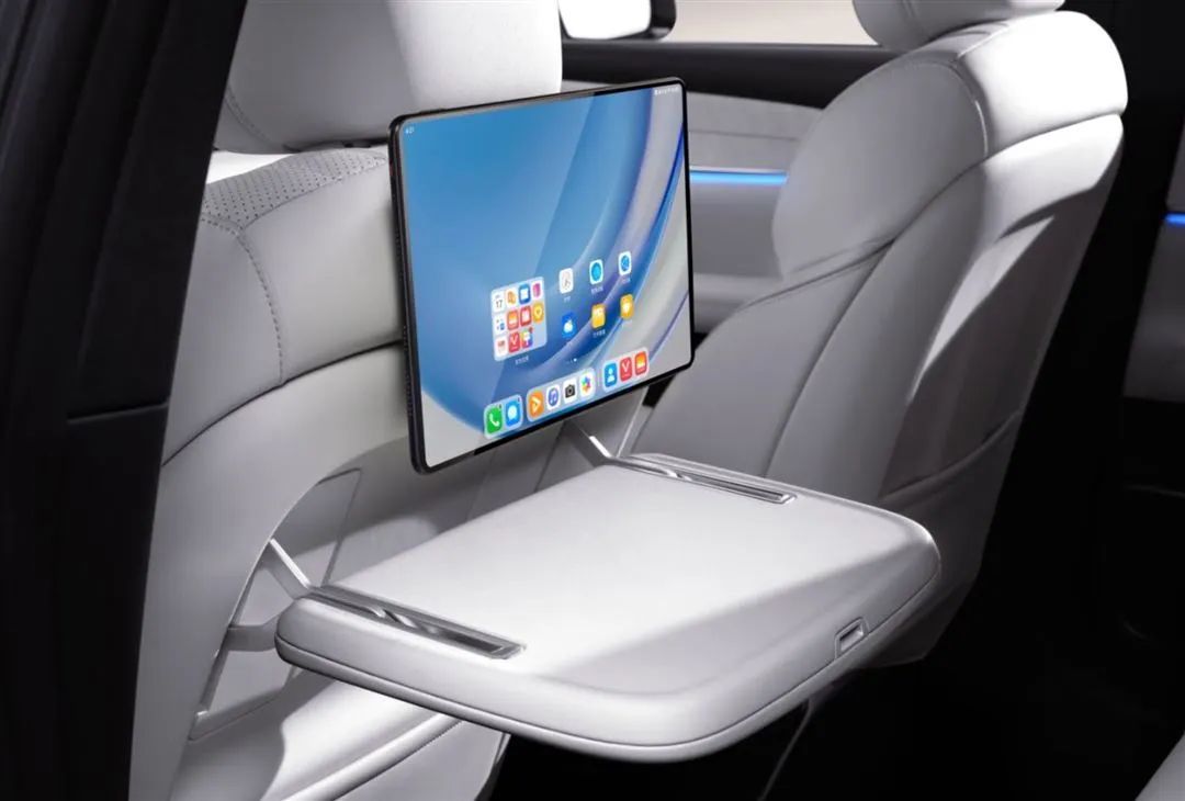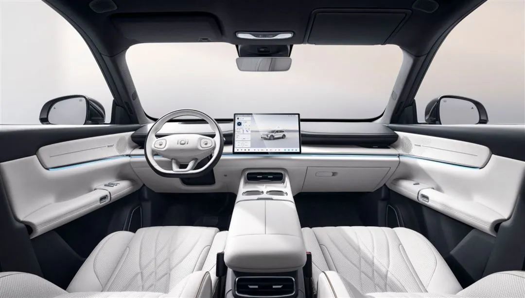 车内依旧是非常简洁的新能源化内饰设计,整个中控台很平整,中间是一块15.4英寸屏幕,屏幕支持向左和向右偏转,最多支持15°偏转,方便主副驾更直观的查看。内部搭载天域OS系统,接入DeepSeek。副驾化妆镜的位置有一块12.8英寸娱乐屏,位置还是挺新颖的,可以让副驾驶抬起头去观看,避免久看颈椎的不适。