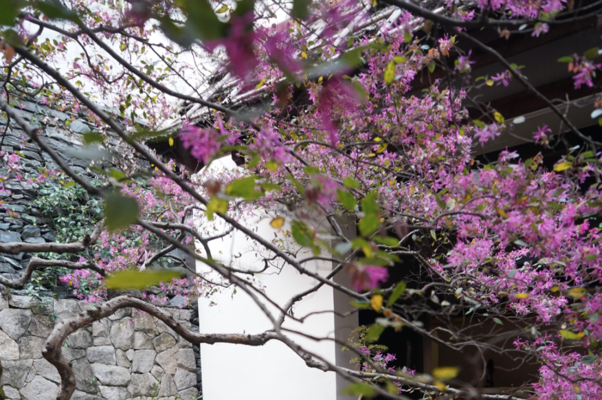 湖南浏阳,熊智家院子里的红檵木正在盛开。