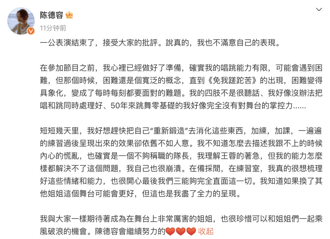 此前,黄蓉还曾因在节目中与队友陈德容的争执登上热搜。