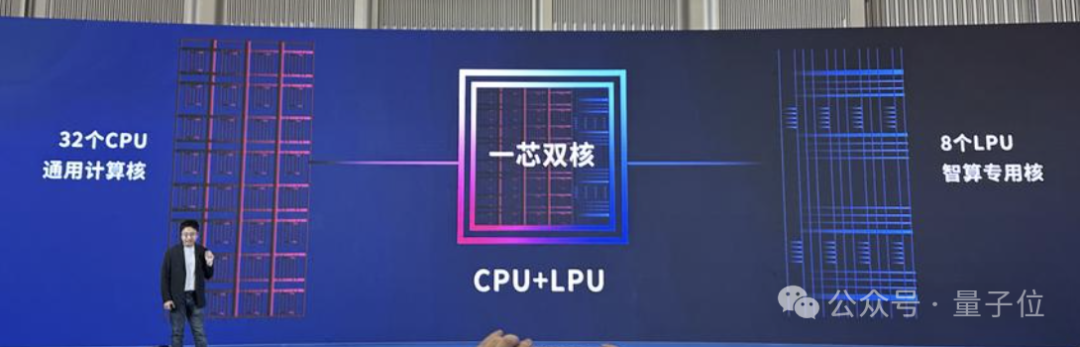 为了更好地完成大模型推理等智算任务,灵羽采用了“一芯双核”的设计架构,由32个高性能通用计算核心(CPU)与8个智算专用核心(LPU)组成。