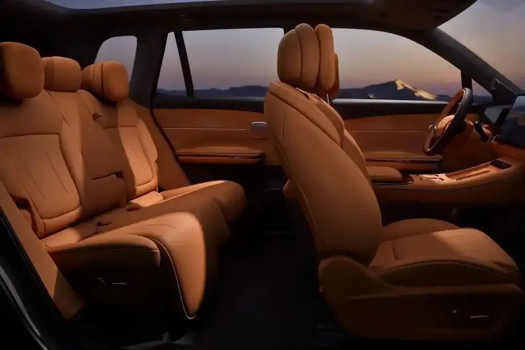 在配置方面,升级为全车Nappa真皮座椅,触感柔软且豪华感十足。后排座椅具备记忆、8点按摩、加热、通风以及一键放倒功能,右后座还有一键尊享模式,极大提升了后排乘客的舒适体验,配备PM2.5抗毒滤芯,为车内提供更清新健康的空气环境。超纤绒类麂皮顶棚增加了内饰的质感与高级感,前排升降式杯架设计精巧,全车静音电吸门让关门动作更优雅且降低噪音。不过,相较于Max激光雷达版,它减少了部分智驾硬件及芯片,没有高速NDA等一些智驾功能。