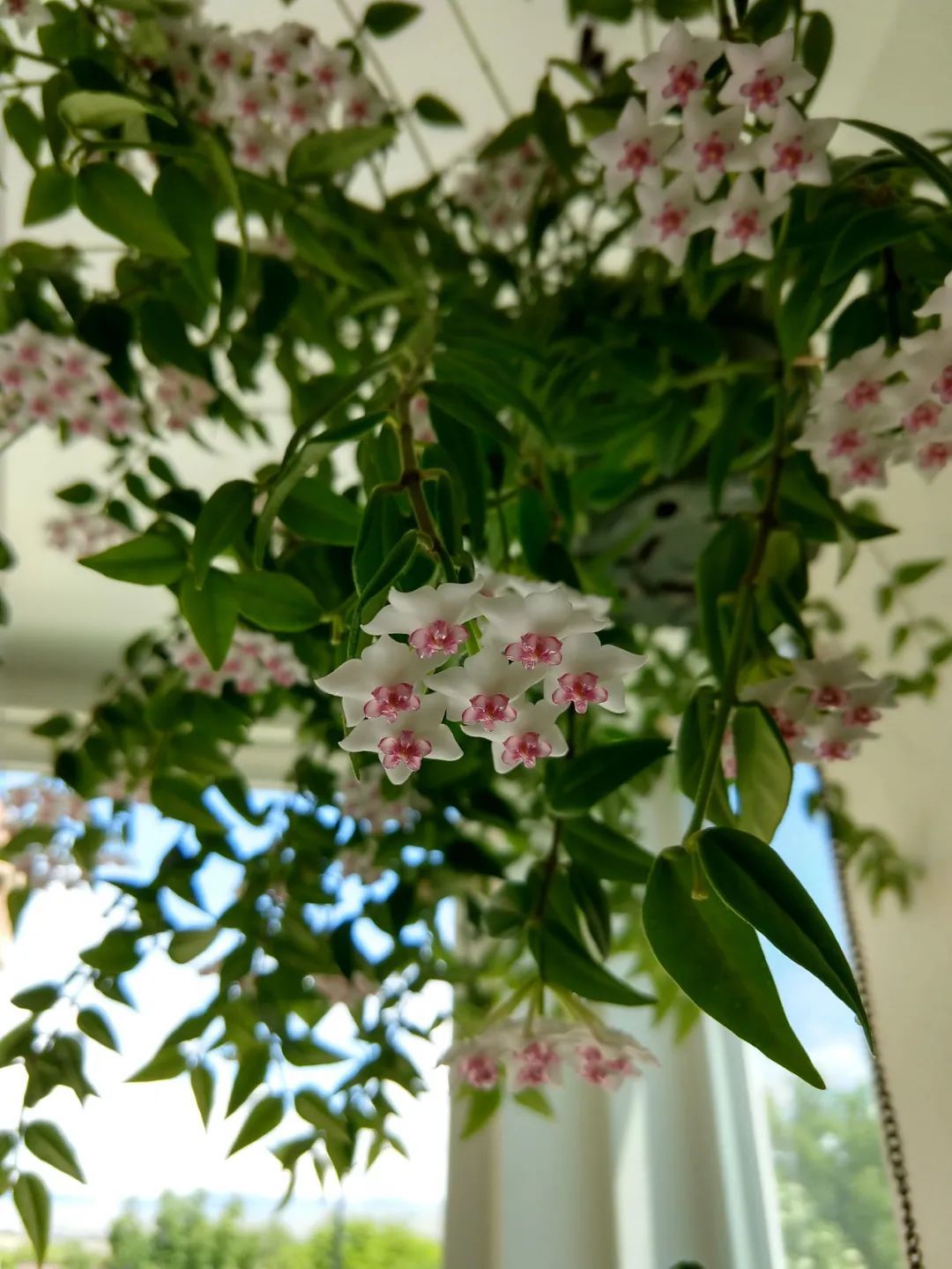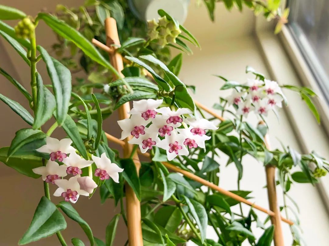 球兰是一种攀爬性的多肉植物,在花盆中栽种的时候,可以搭设支架让它攀附生长,也可以将它养成垂盆植物,将它悬挂在窗台或阳台上,养护球兰一定要保证土质足够疏松透气,有利于它的根部生长。