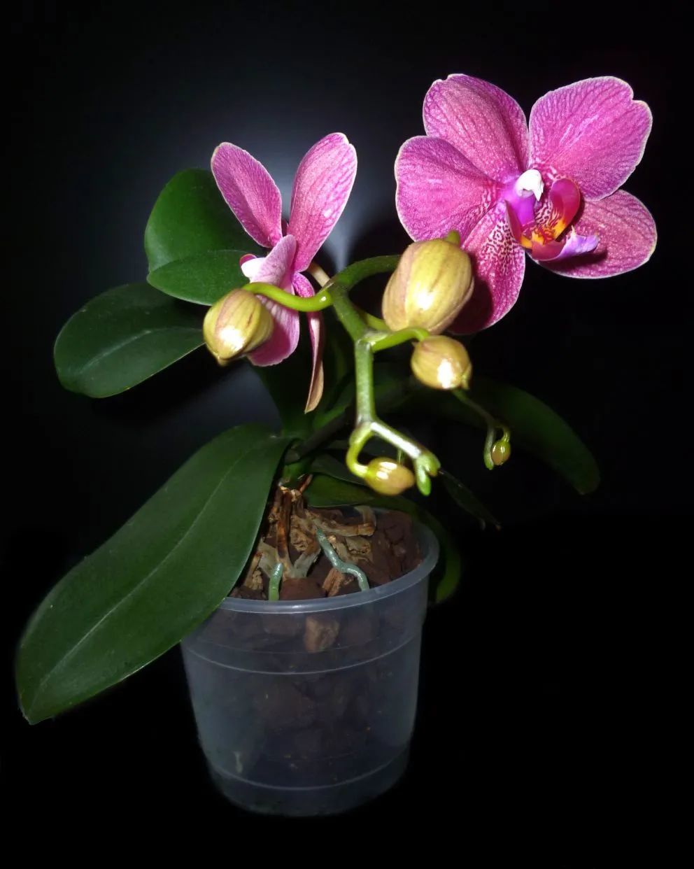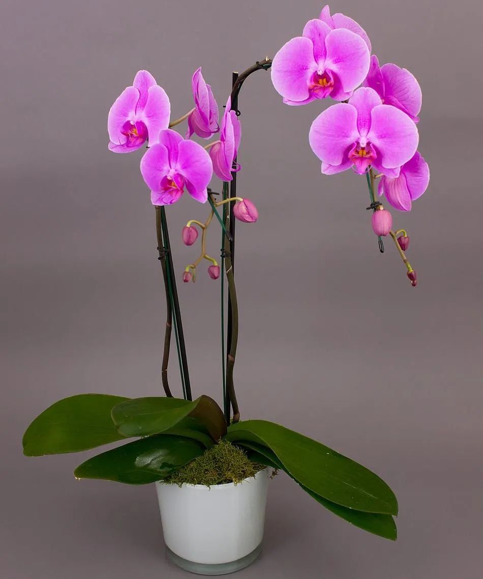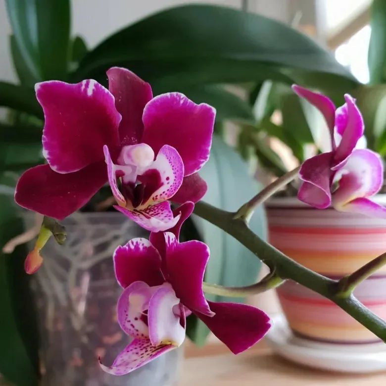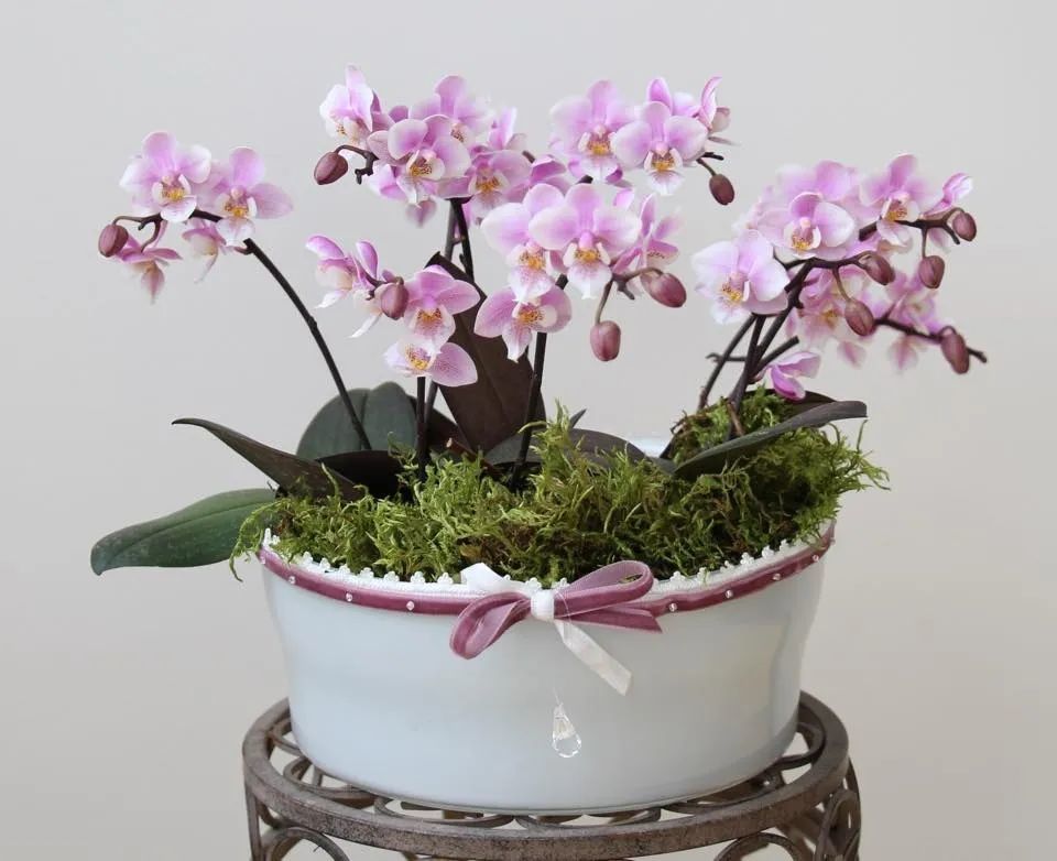 用紧凑一点的花盆栽种蝴蝶兰,可以让水苔快速干燥,再及时补充水分,就可以保证它的根系饱满健康。