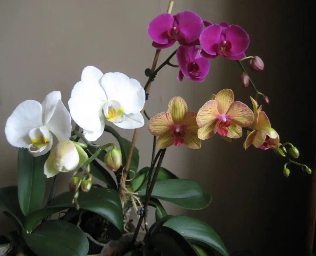 到了夏天肯定是要遮阴养护,秋天天气转凉之后,又要多给光照,这样蝴蝶兰才能保证年年开花。