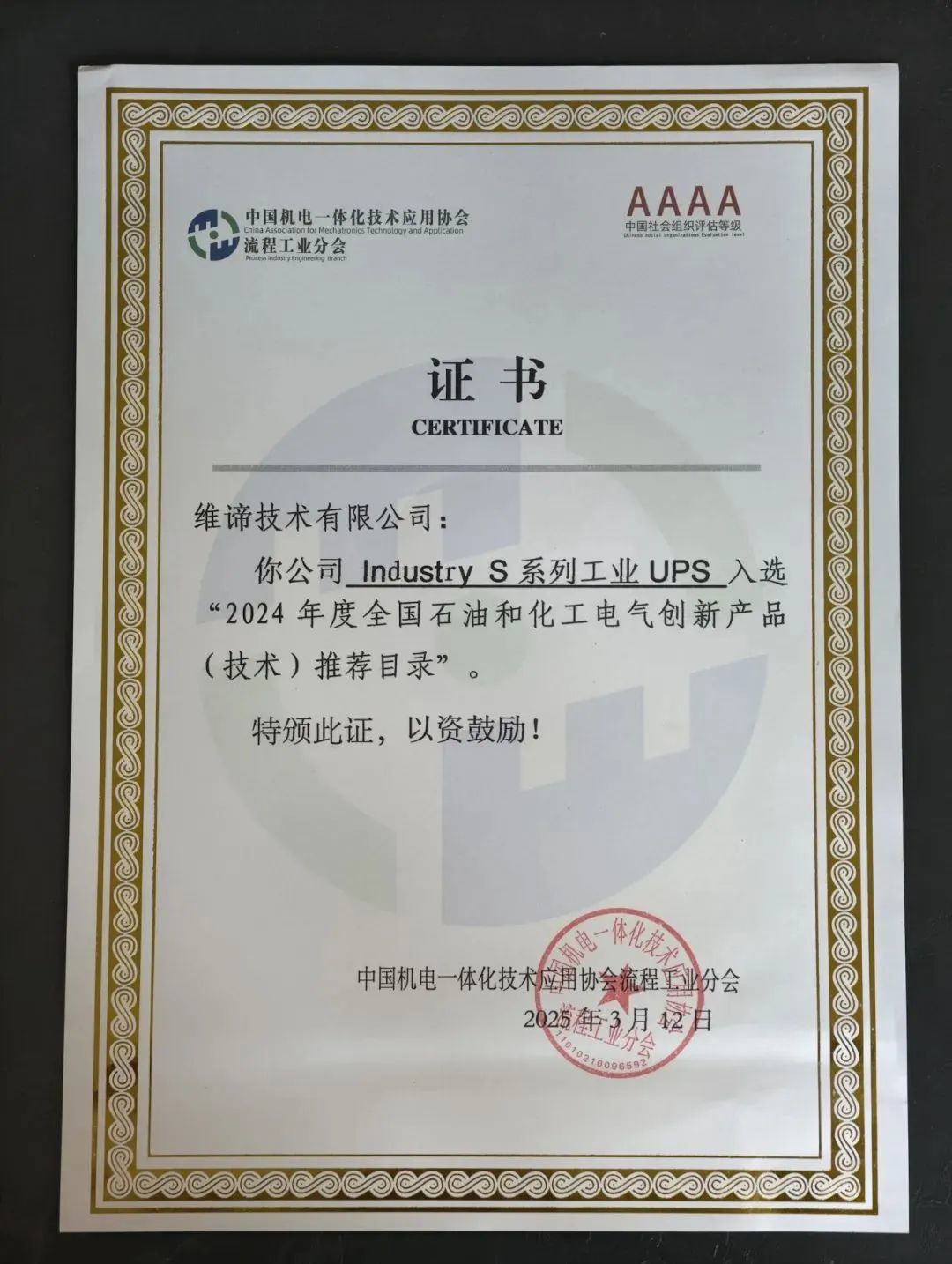 前不久,在第九届全国石油和化工电气技术大会上,维谛技术(Vertiv)旗下的Vertiv™ Liebert® Industry S 系列工业UPS,凭借卓越性能和出色的工业适应性,荣获“2024年度全国石油和化工电气创新产品(技术)”大奖。