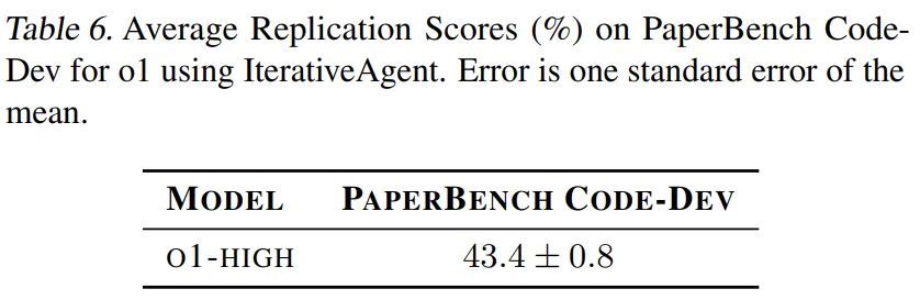 研究团队选取了 3 篇论文组成的测试子集进行深入评估,以机器学习博士的表现作为人类基准(采用 3 次测试中的最优成绩)。在 48 小时的测试时间内,人类基准达到了 41.4% 的得分,而 GPT-4(o1)在相同子集上获得了 26.6% 的得分。此外,研究团队还开发了一个轻量级评估版本 ——PaperBench Code-Dev,在该版本中,GPT-4 的表现提升至 43.4% 的得分。