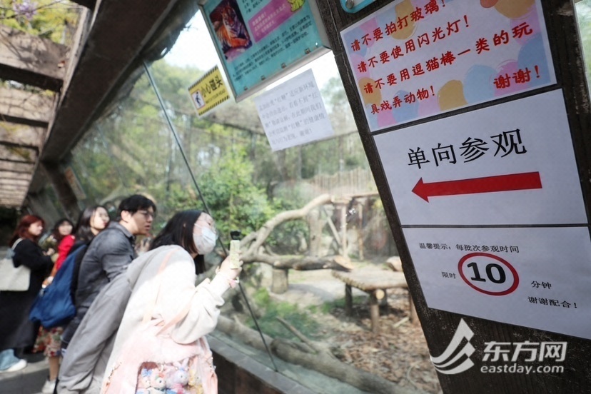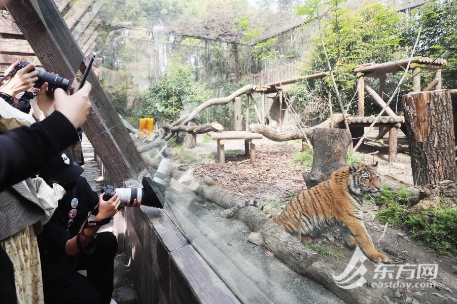 东方网记者柏可林4月3日报道:要说上海动物园当下最受欢迎的“团宠”是谁,非孟加拉虎“红糖”莫属。近两个月来,“红糖”热度居高不下,甚至吸引了不少外地游客专程前来,就为了一睹小老虎活泼好动的风采。为迎接清明假期的观虎大客流,上海动物园将在“红糖”展区实行单向通行,每批次参观时间约为10分钟,引导游客有序参观。