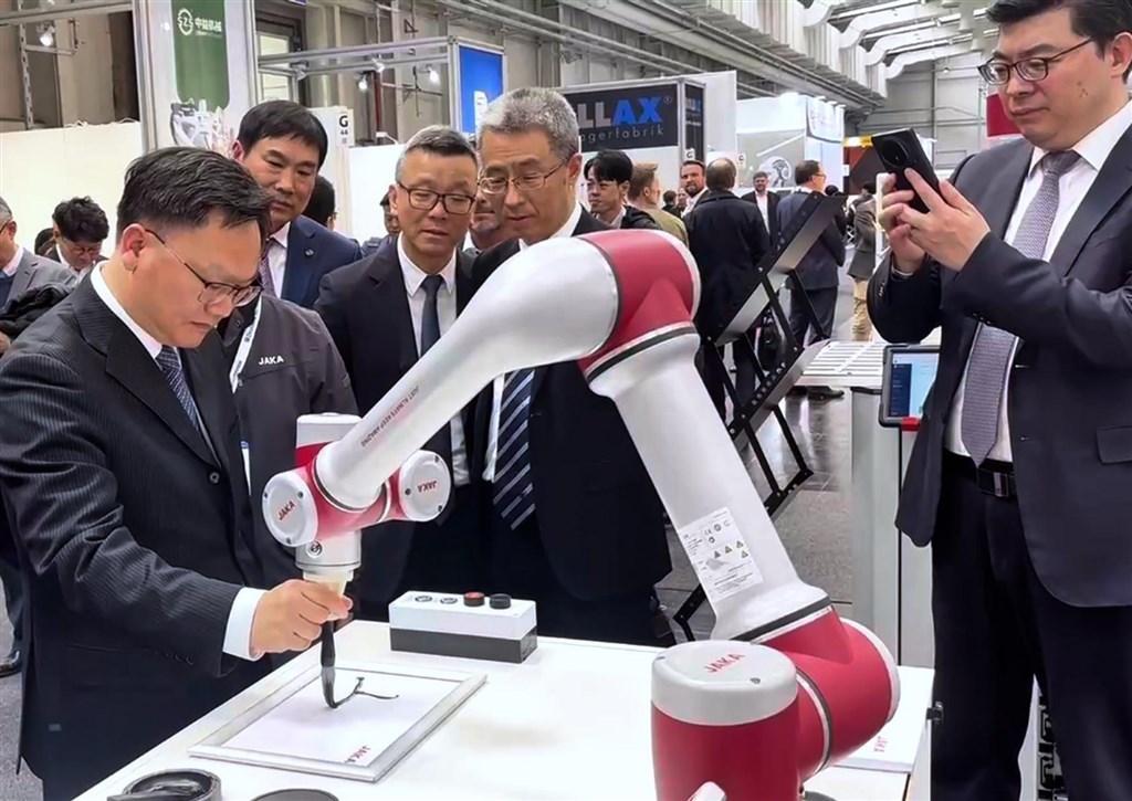 节卡机器人在展会上面向全球发布了JAKA S 5智能力控协作机器人。现场,JAKA S 5书写的“上海”二字引发关注。该机器人凭借0.1N级力控反馈技术和毫米级精度控制能力精准复刻,展现了人机共融的智能与灵活。