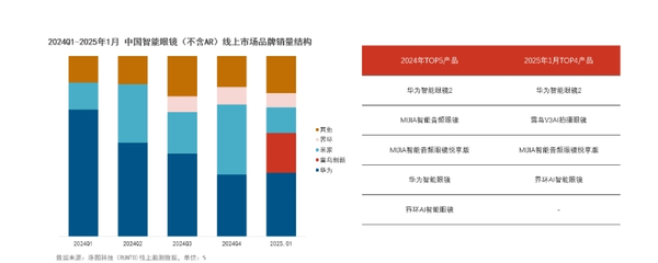 中国智能眼镜市场在2024年的出货量为16.7万副,同比增长44.0%。在零售端,线上市场是智能眼镜的主要销售渠道。中国智能眼镜线上市场的2024年销量为13.4万台,同比增长36.1%;销额为1.4亿元,同比增长24.7%。