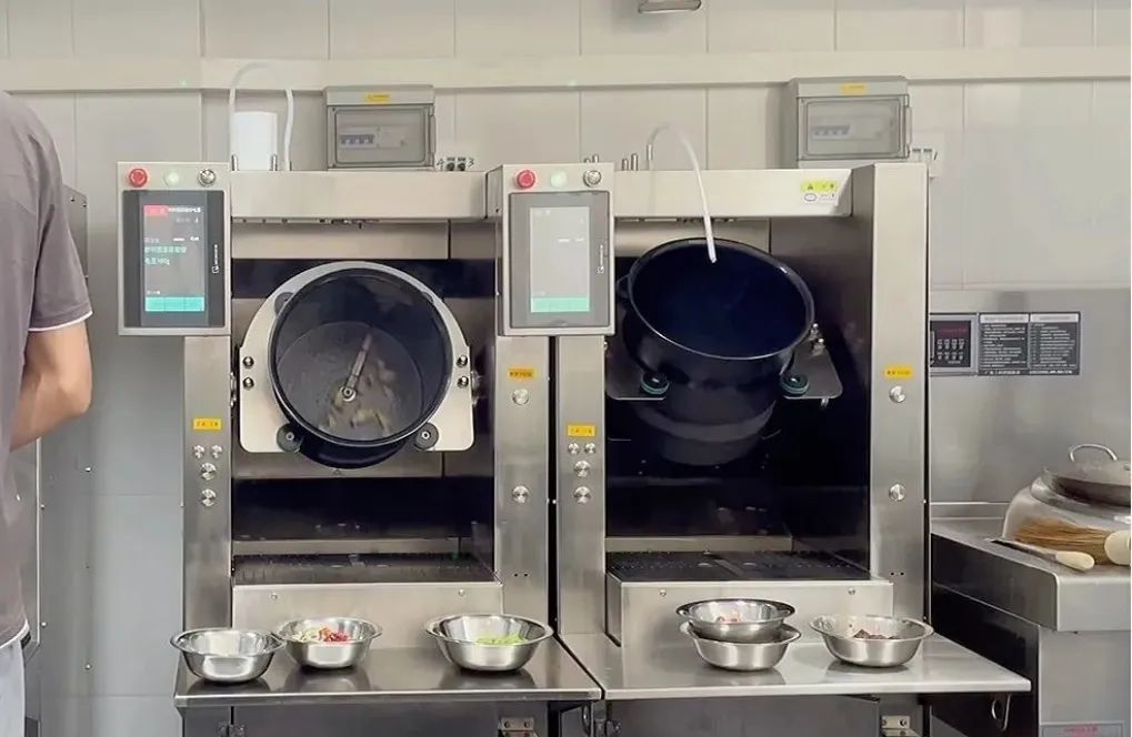 但这一问题随着AI智能的出现被打破。许多中式快餐开始引入智能化设备,如炒菜机器人、智能炒锅等。智能炒菜机和食材形成“人机协同”生产线。