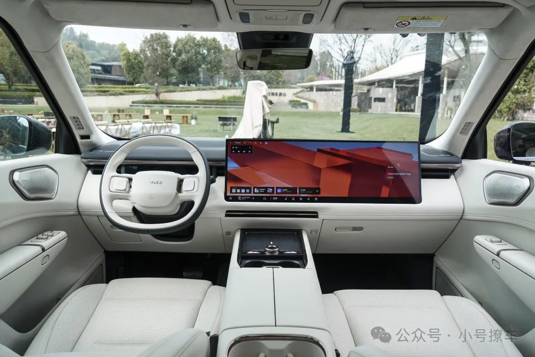 内饰方面也是如今流行的设计语言,提供有双幅式多功能方向盘、12.66英寸全液晶仪表盘、30英寸6K分辨率中控/副驾双联屏以及电子怀挡,HUD抬头显示也没有缺席,操作台部分还设计有无线充电面板以及杯架。中控搭载的是高通骁龙8295车机芯片,并深度融合DeepSeek大模型。