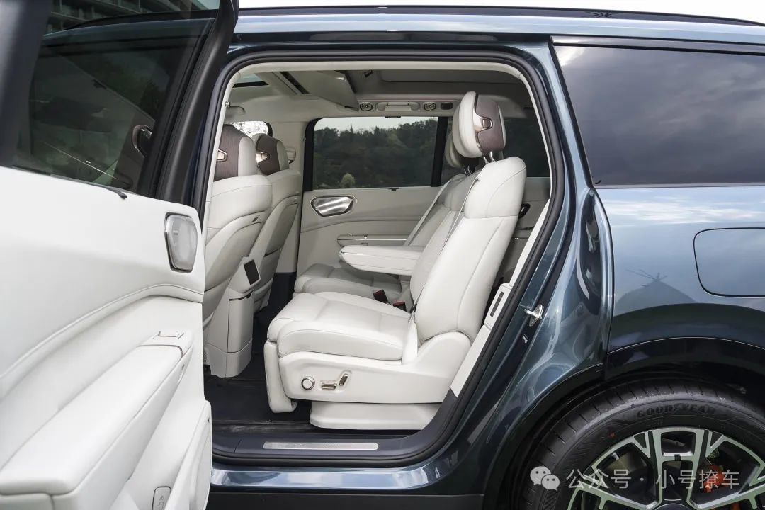 座椅方面,领克900全系都是6座布局,第二排的配置也是拉满的,小桌板、吸顶娱乐屏都没有缺席,第二排和第三排座椅都支持前后移动,空间自定义程度非常高,而且停车休息时第二排座椅还能实现前后旋转。