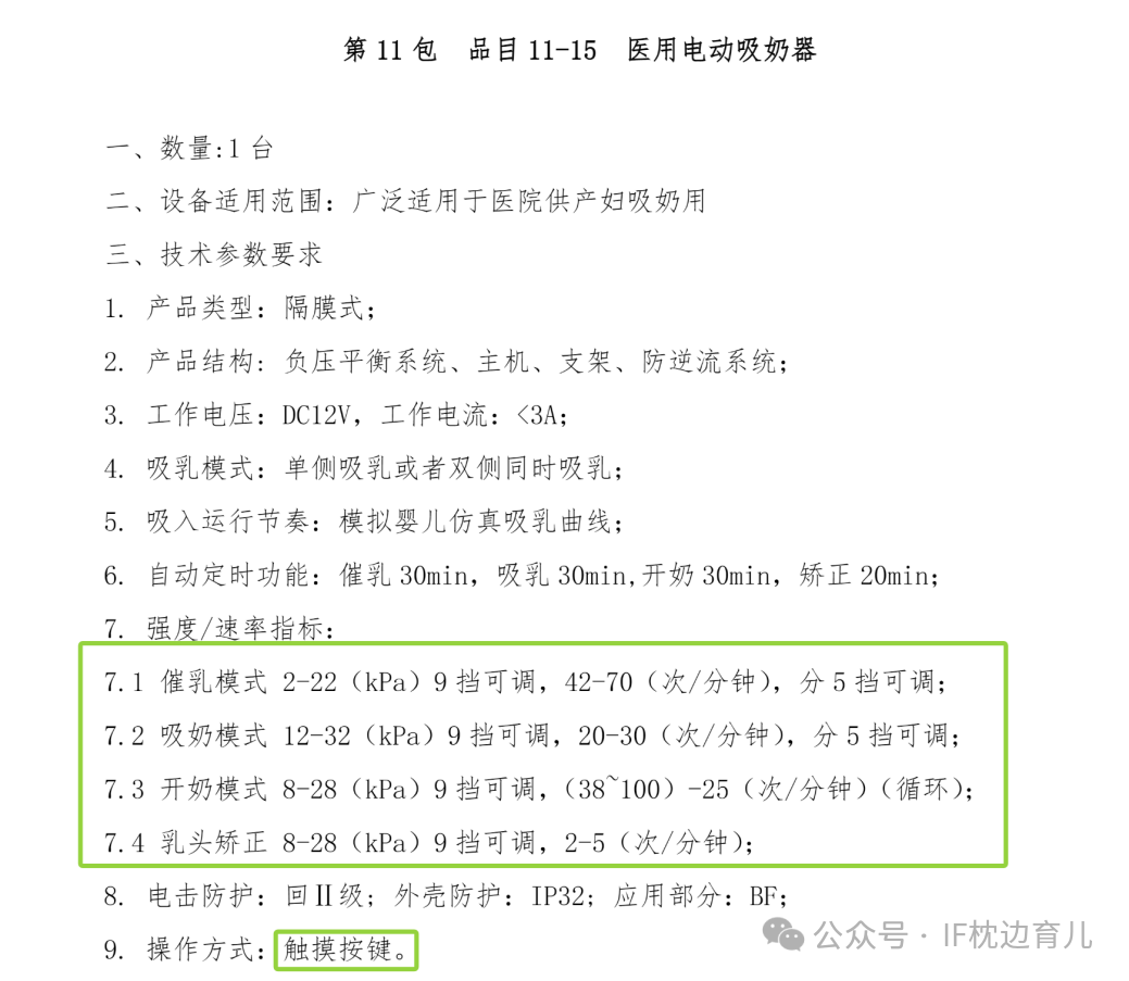 查阅资料时我发现,北京某医院在采购医用电动吸奶器时,对模式有具体要求,并且每个模式还要有几个挡位可以调节。