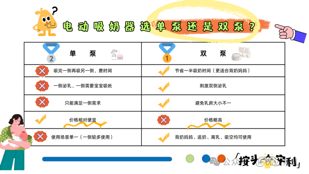 但如果说实用性,还是双泵。不管是外出、乳房胀痛,还是夜间哺乳,双泵都更实用一些。