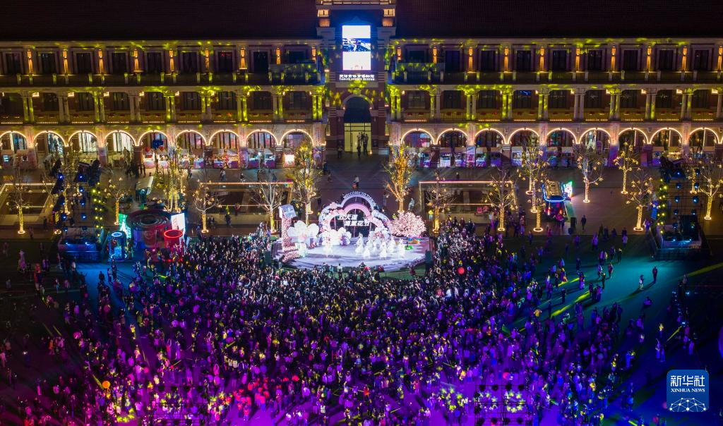 这是4月3日拍摄的第三届五大道海棠花节启幕现场(无人机照片)。