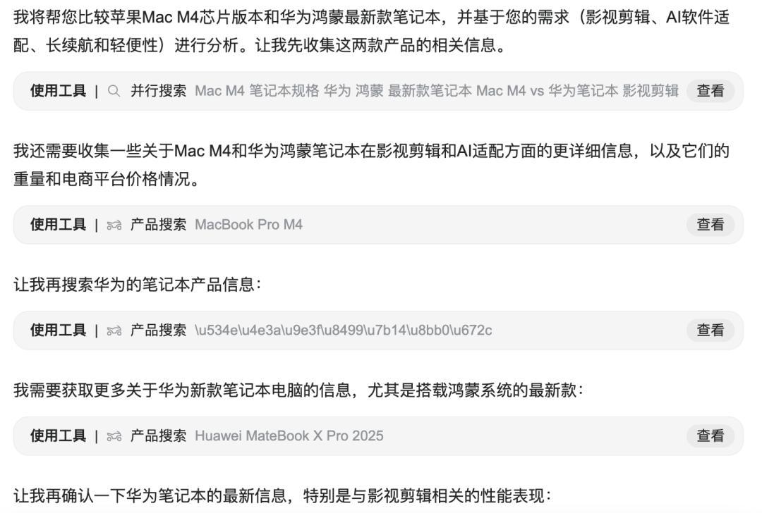 从生成的报告看,并仅用了三四十秒钟就完成了。而且查看了电商品台的网页,给出了购买链接,将一些国补等优惠信息也分析了出来。这就有点实用了。