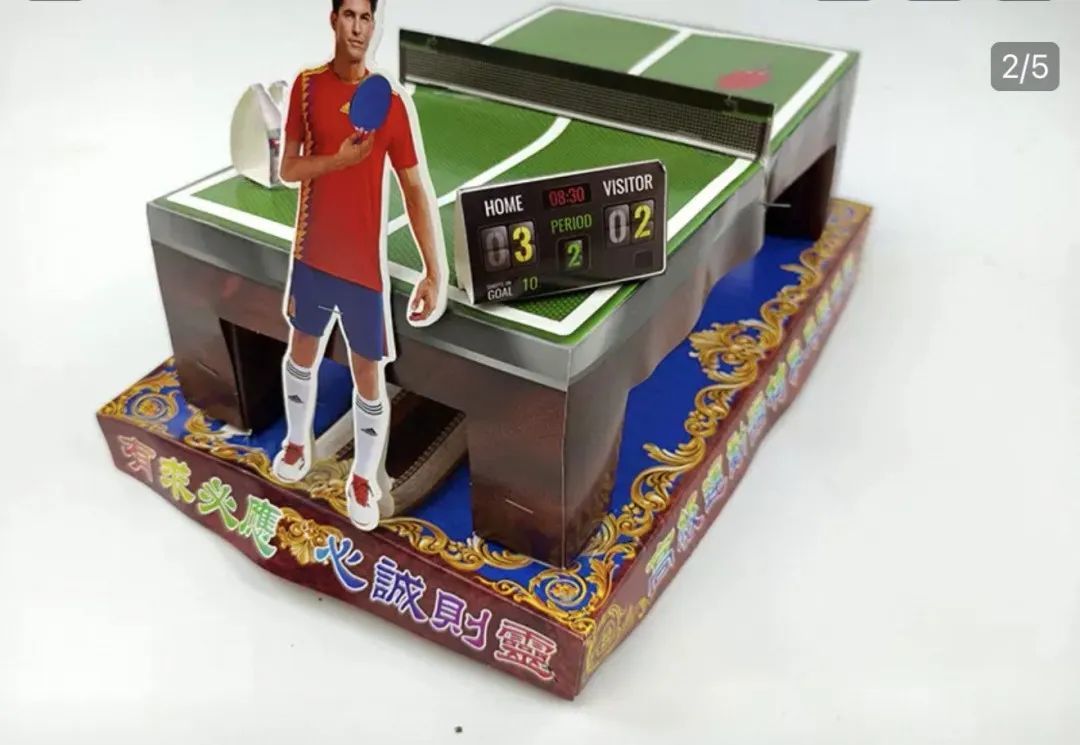 甚至,就连乒乓球这样一个传统的双人运动,店家都专门安排了一个纸扎的运动员在对面(就是不知道这个运动员知不知道