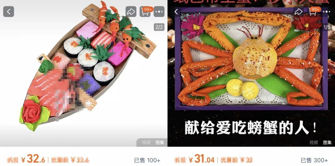So,少盐少油的生阉寿司、高蛋白的鱼虾蟹、富含维生素的纸扎水果,闲鱼某宝的老板们也都有计划。