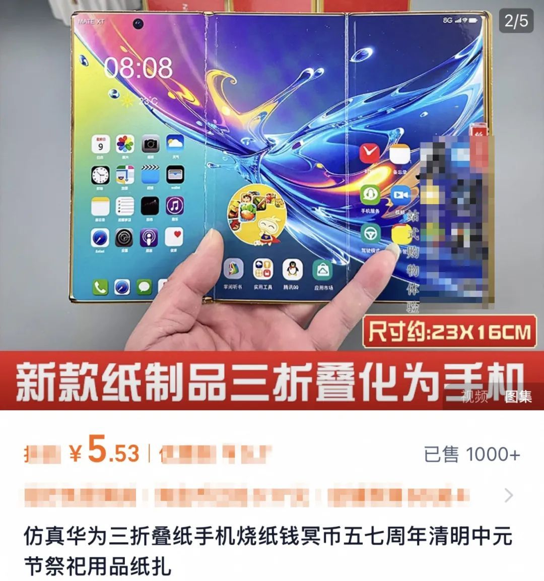 可能是为了拉高用户的使用体验吧,这些商家连纸扎版Mate XT的包装盒和充电头、充电线都安排上了。