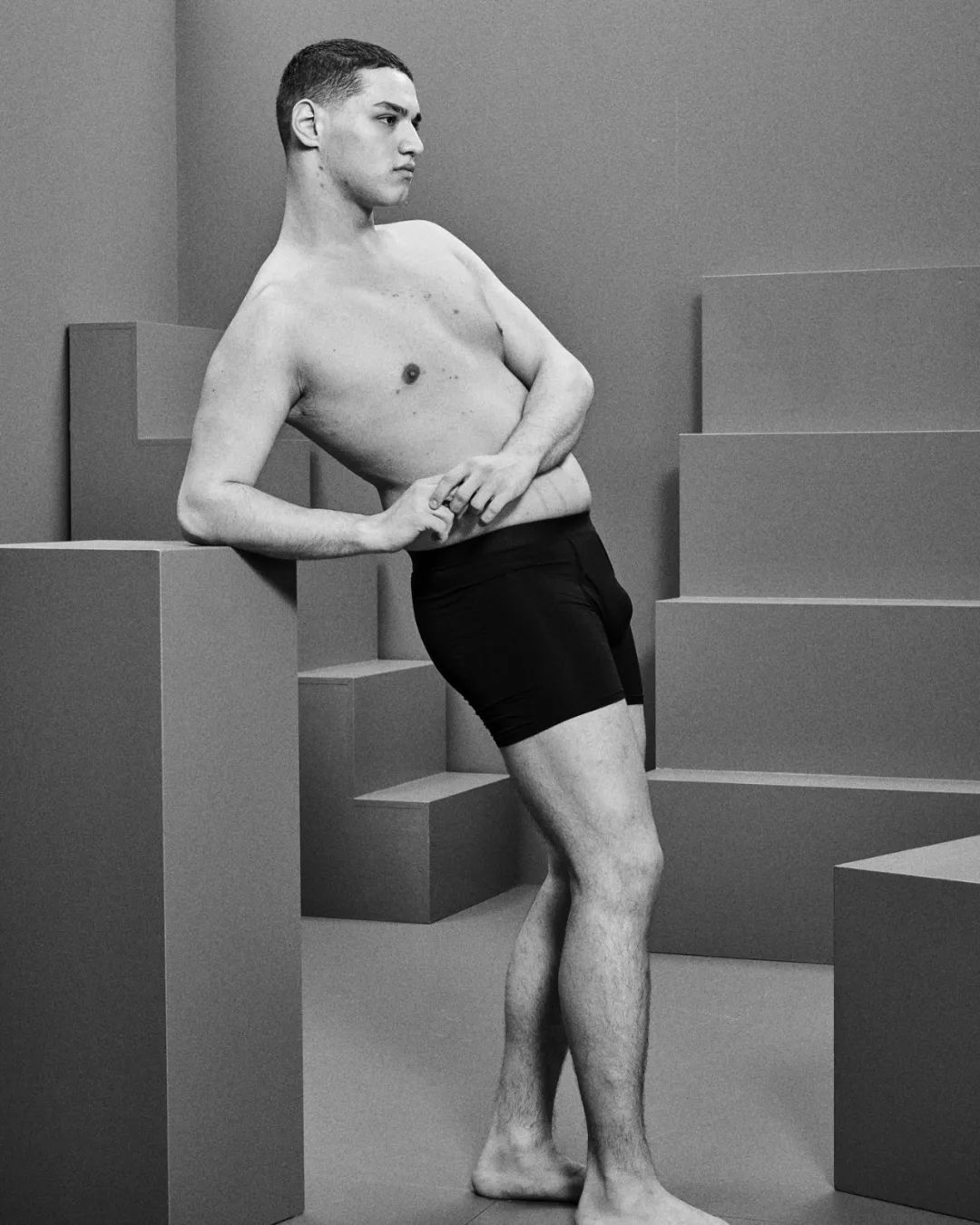 其实 Faruk 并非很大码的壮男,相对来说他只是一个有小肚腩的普通人。他的身材比例其实还是不错的,但是有点微胖,跟传统定义的男模特不同。