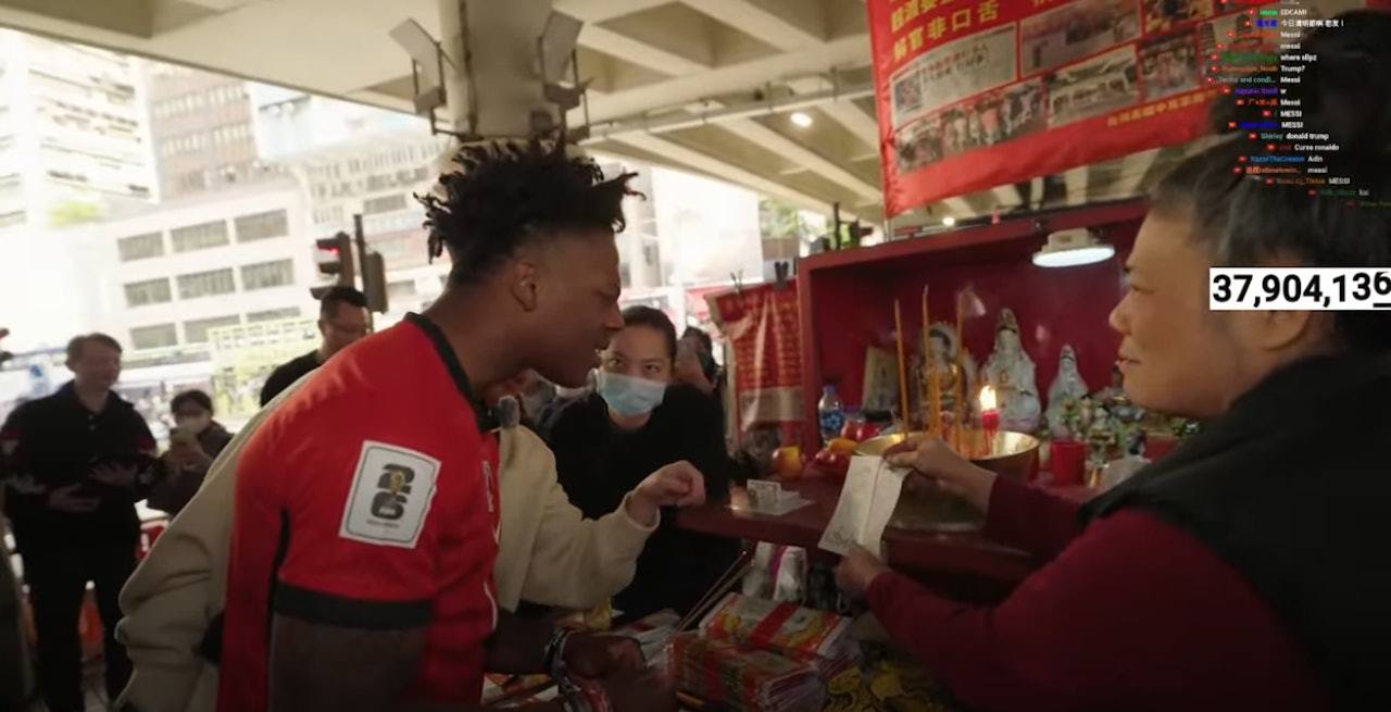 IShowSpeed频道直播“甲亢哥”到湾仔鹅颈桥打小人。
