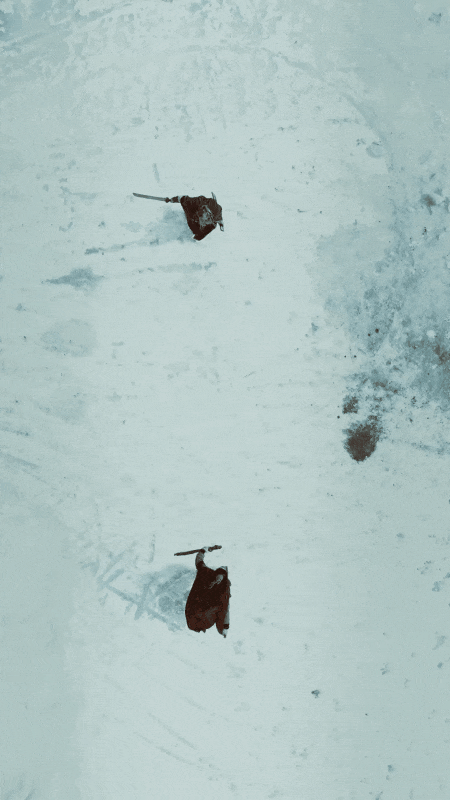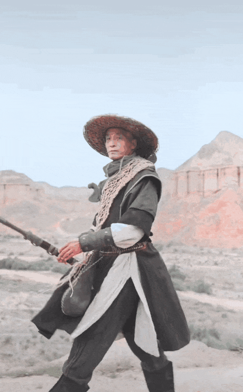 他扮演的剑客,上一秒拿在手里的还是一根木棍,下一秒忽然长剑出鞘,眉间杀气与沧桑交织。