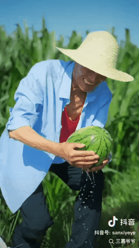 直到2021年,儿子张建宗举起手机,拍下他在田埂上啃西瓜的镜头并发布在了短视频平台,