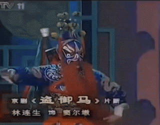 京剧中的“蓝脸”窦尔敦表演片段。来源/CCTV11戏曲栏目