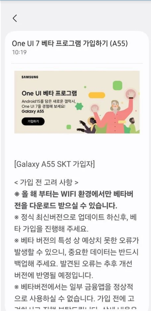 目前,韩国的A55用户已经可以报名参与One UI 7.0的Beta测试。参与方式十分简单:用户只需通过三星会员应用程序登录与手机关联的三星账户,点击应用首页上的One UI 7.0 Beta计划横幅并完成注册。注册成功后,用户进入手机的“设置 > 软件更新 > 下载并安装”,即可获取更新。此次更新预计将为手机带来更时尚的设计和功能提升,不过具体的亮点功能目前尚未完全公开。
