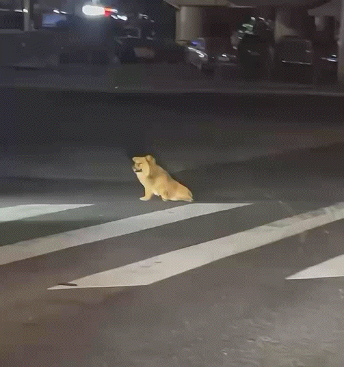 小姐姐@cbdd 路上遇到小黄狗过马路,小狗只能后腿残疾只能趴在路上匍匐前行。
