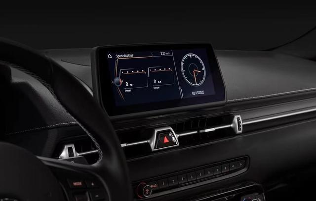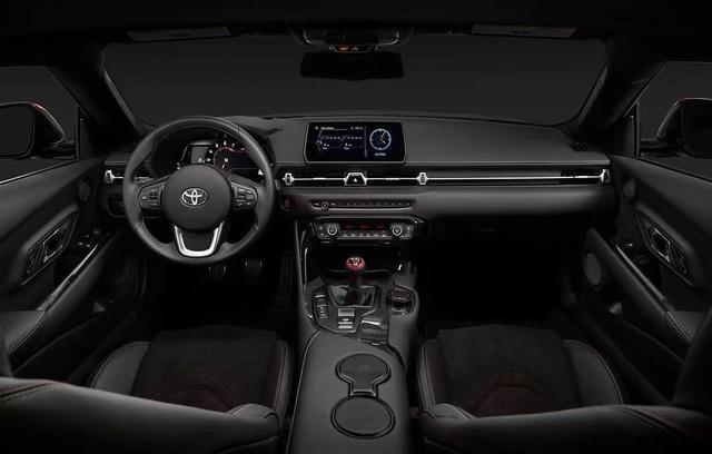 内饰方面,新车整体变化并不大,主要是升级了真皮包裹的Alcantara座椅,并且辅以红色缝线,而头枕处也植入GR标志。同时,换挡杆加入红色饰条,而安全带也采用红色设计,尽显运动氛围。