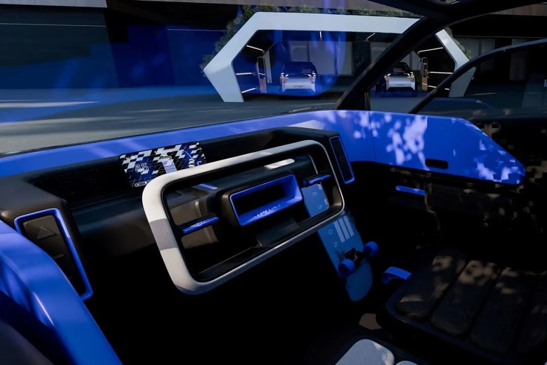 内饰走的同样是极简科技风,风向盘类似飞机操纵杆,然后车内采用了大量圆角矩形,还配备了全液晶仪表。比较有意思的是,虽然它有两个座位,但副驾驶是可以拆掉的,主要目的是进一步拓展装在空间,理想状态下能放个大行李箱甚至冲浪板。