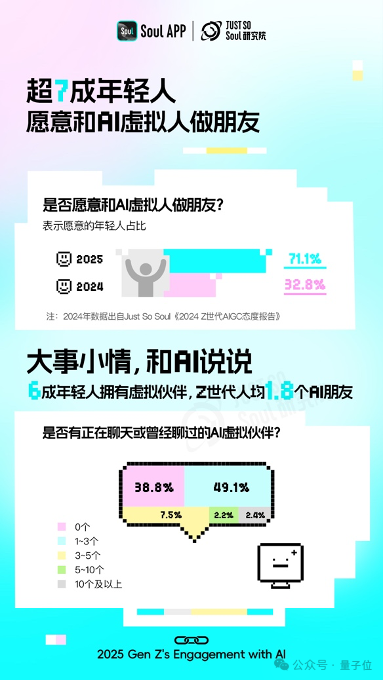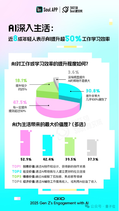 以上,来自Soul App旗下Just So Soul研究院梳理总结的《2025 Z世代AI使用报告》。今年是该研究院第二次面向年轻群体发起AI相关调研,共回收3680份有效反馈。