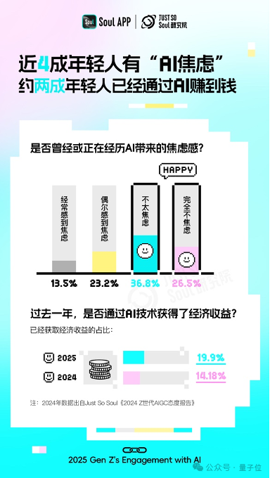 令人振奋的是,此次调研中,19.9%的年轻人表示已经通过AI赚到钱,而在2024年的调研中,这个数据为14.18%。