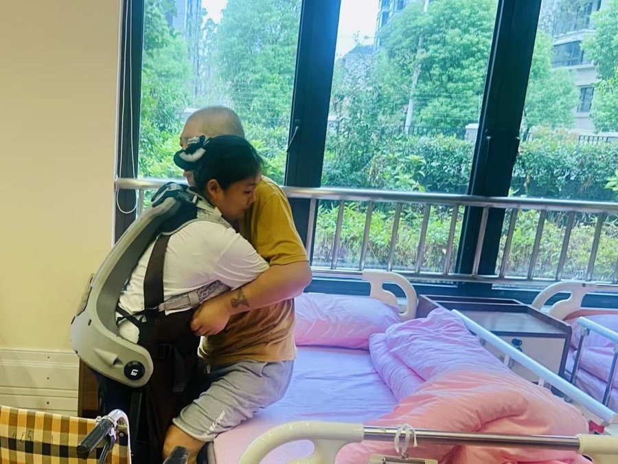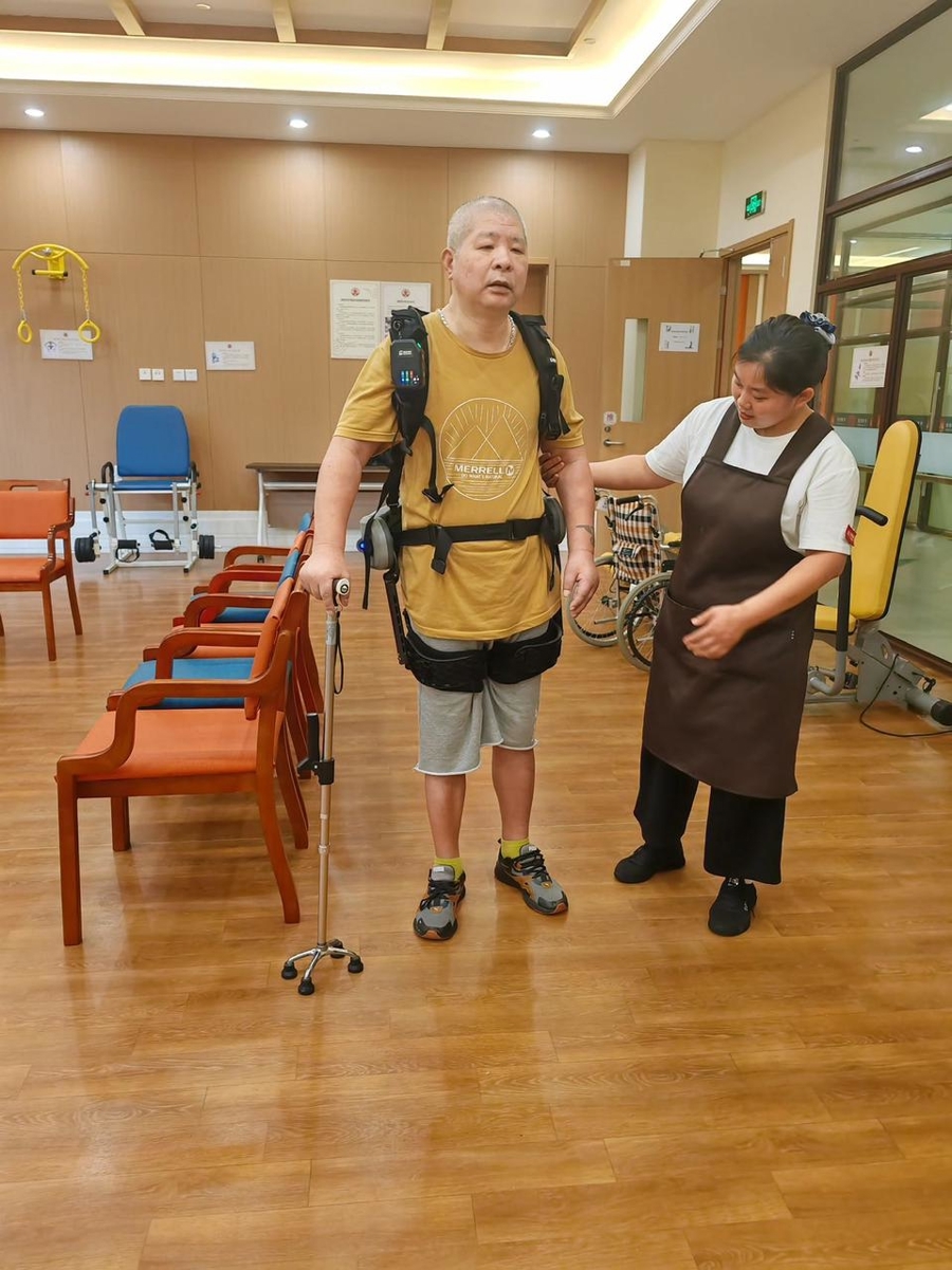 上海一家社区看护中心脑梗患者使用外骨骼机器人行走受访者供图