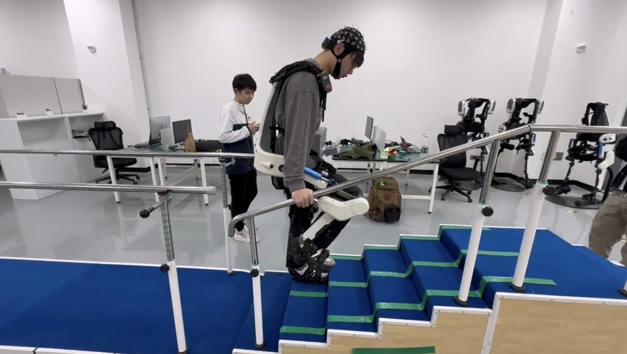 在华南科技大学,脑机接口产品与傲鲨智能的外骨骼机器人的“二次开发”受访者供图