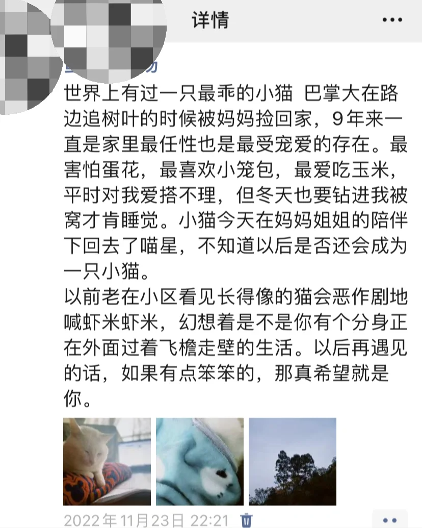 打开她的主页,满满都是后悔、自责和对小猫咪的思念。