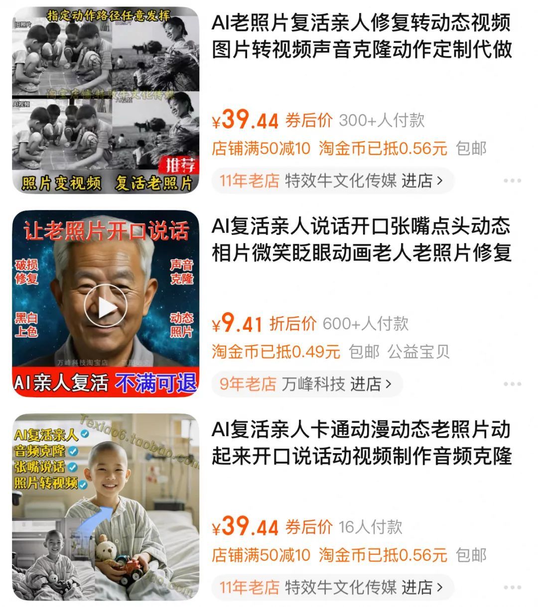 几十元到上千元定制的「复现」服务|图片来源:电商平台
