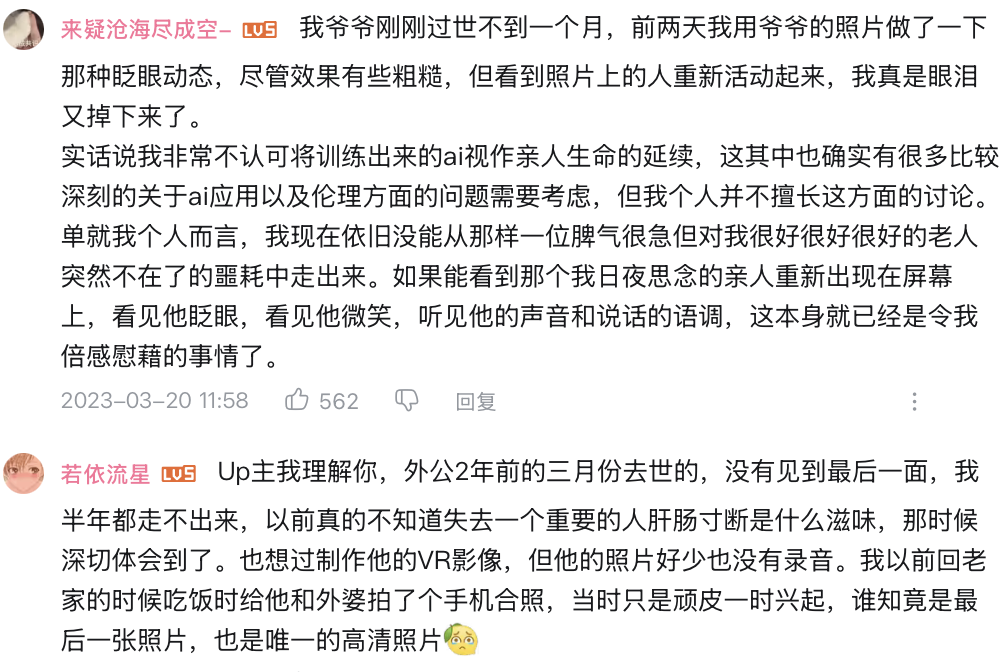 现实中,也已经有大量难以承受失亲之痛的人,他们用 AI 重建了逝者的音容相貌。