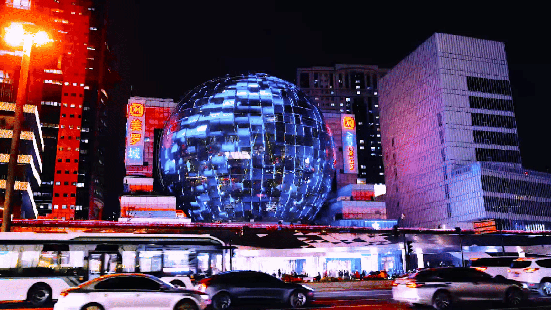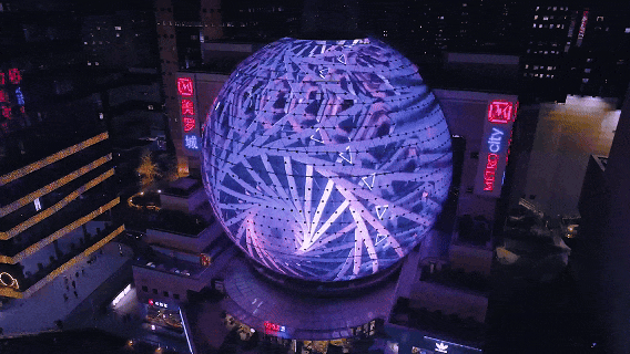 带给市民惊喜感受的不止新地标,作为徐家汇的标志性景观,美罗城的“大球”也在去年得到科技赋能,用3888块高清屏拼接出国内最大的4K球幕。