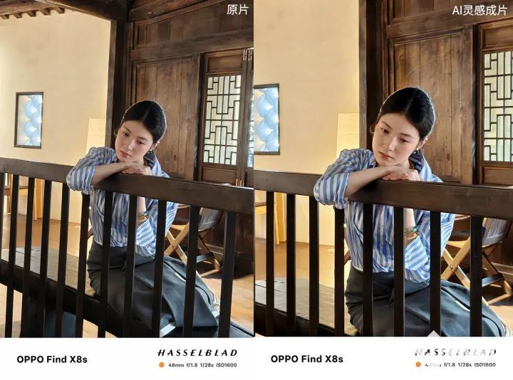 图片角度不正也不用怕,原片角度看上去有些歪,让照片看上去有些不协调。经过AI灵感成片修正后,明显可以看到照片被拉直了。这种图片的比例和角度修正效果,不仅对人像生效,各种照片都能修,我们特意拍歪的照片,也被Find X8s轻松修正了。