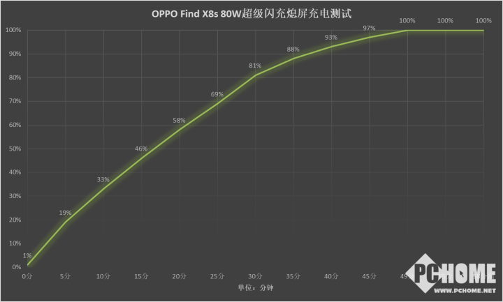 快充方面,OPPO提供了80W有线快充和50W无线快充。实测有线充电15分钟即可充到46%,30分钟充至81%,此时就能用很长时间了。49分钟系统显示100%电量。无论是快速补电还是满电出行,充电速度都非常让我们满意。Find X8s还提供了10W无线反向快充,应急时刻能够为配件充电,还支持磁吸充电。