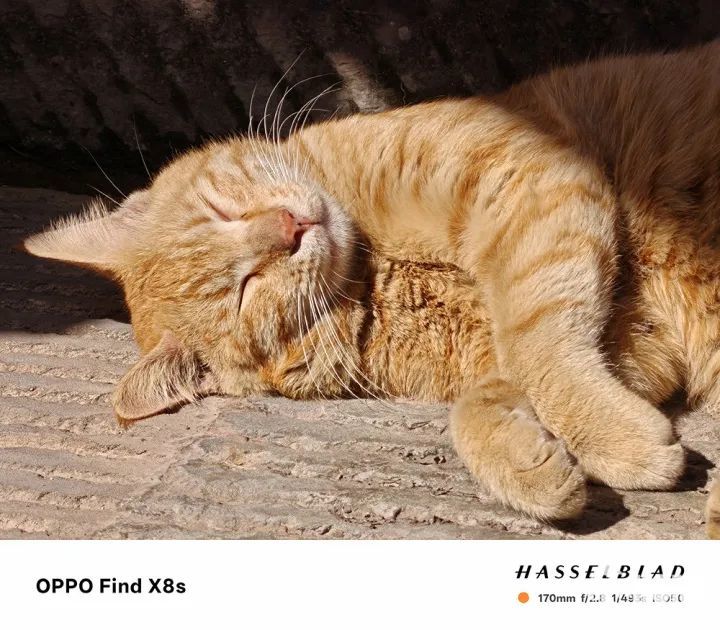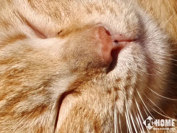 有了潜望长焦镜头后,Find X8s用来拍宠物也十分合适,我们可以在远距离不打扰宠物的情况下进行拍摄。比如熟睡的小猫,就可以在不惊动宠物的前提下拍特写。样张中可以捕捉到猫咪慵懒的睡态,放大后的毛发、胡须细节依旧十分清晰。
