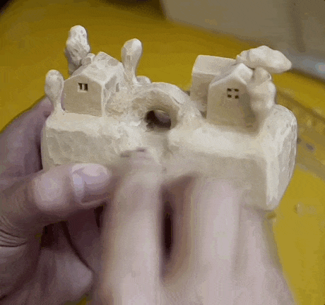 在木工的手下,它竟是如此听话地从一个小方块不断接近房子的模样。